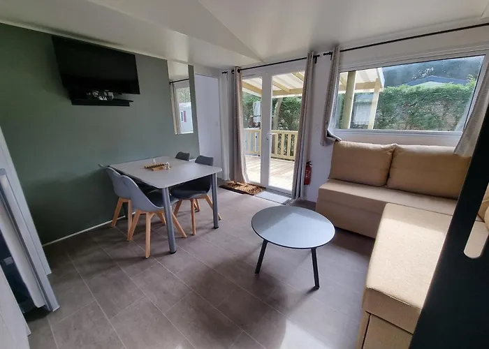 Mobil Home 2 Chambres Camping med 2 sovrum, som ligger ungefär 25 minuters gångavstånd från Atlantic Toboggan SARL, har ett turkiskt ångbad, hamam och bubbelpool. Villan med 2 badrum erbjuder möjligheter till biljard och dart i området, ungefär 10 minuters bilfärd från Saint-Jean-de-Monts Golf Course.